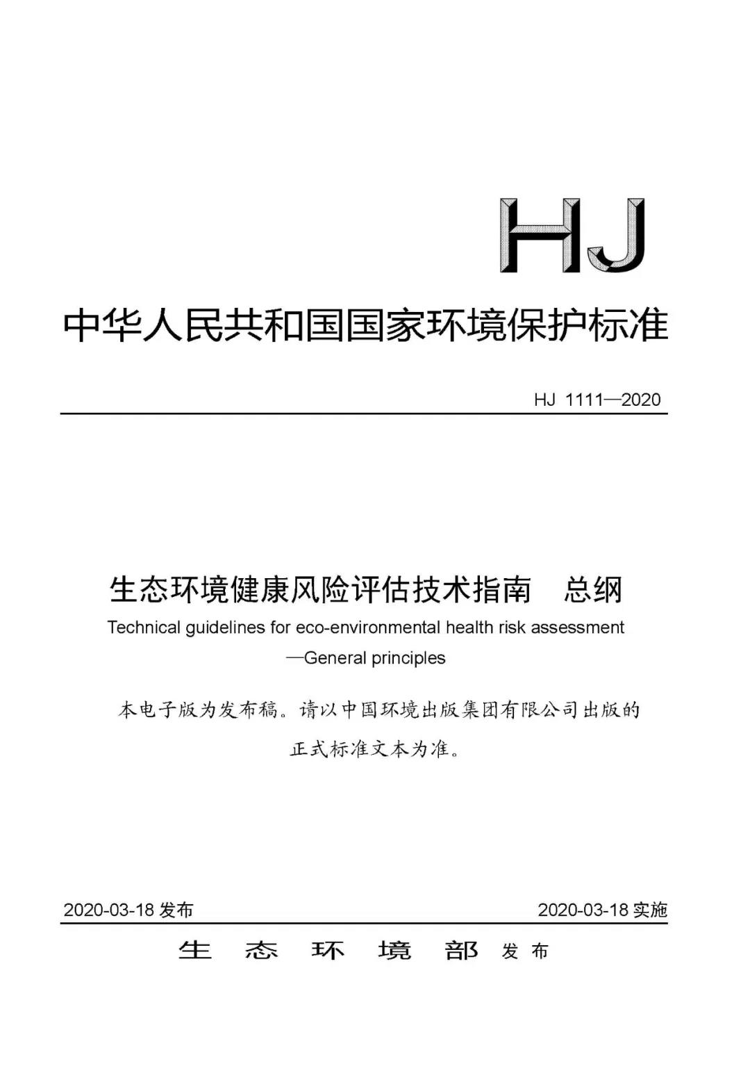 重磅 |《生態環境健康風險評估技術指南 總綱(HJ1111-2020)》發布,即日生效!