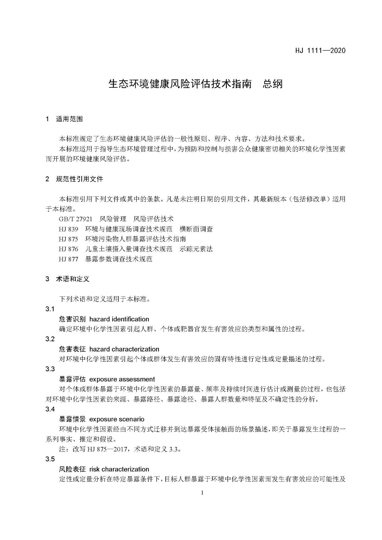 生態環境健康風險評估技術指南 總綱(HJ 1111—2020)